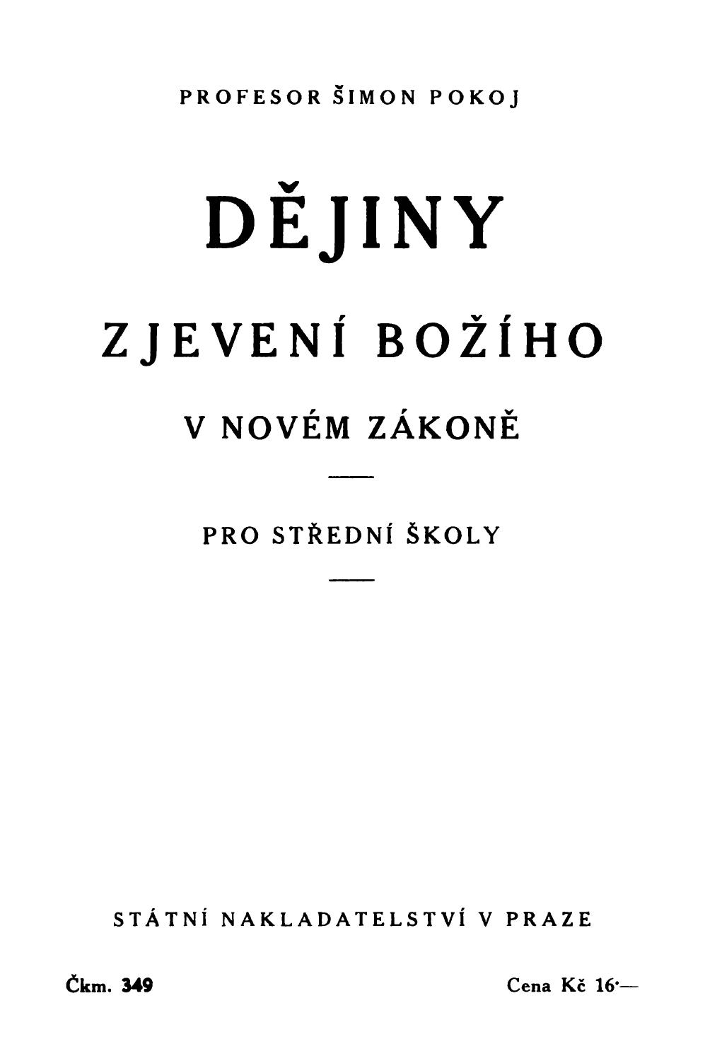 Pro třetí třídu škol realních. 1. vyd. 1889, 2. nezm vyd.1897. 3. v podstatě také nezm. vyd. vyšlo r. 1902. R. 1908 vyšlo ve dvou dílech 4. opravené a rozšířené vyd.: Dějepis zjevení Božího ve Starém Zákoně pro třetí třídu škol reálních a Dějepis zjevení Božího v Novém Zákoně pro čtvrtou třídu.