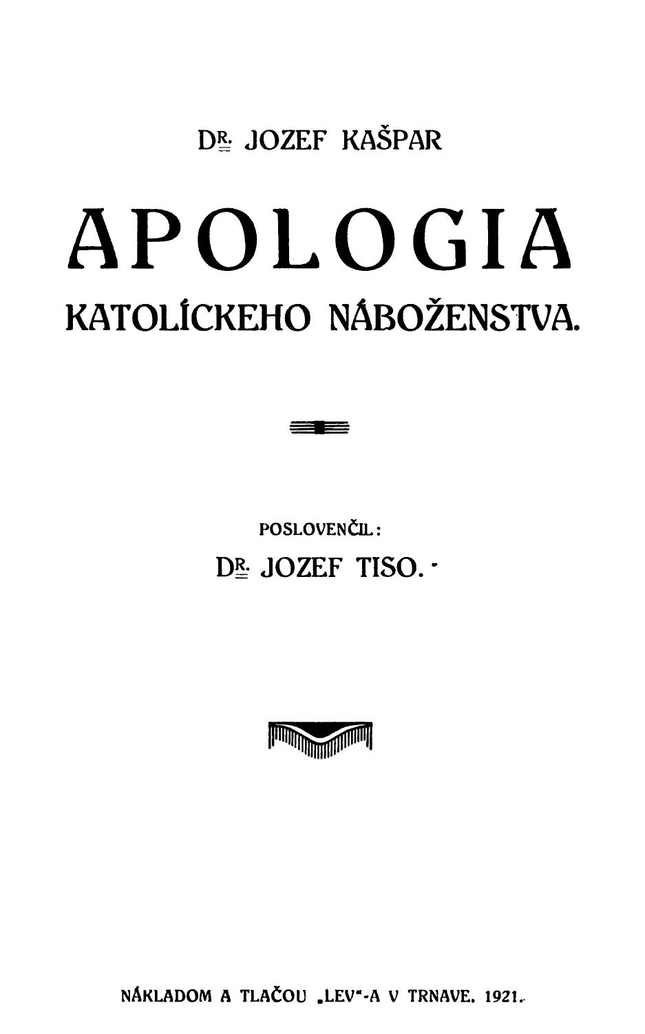 Publikaci Apologetika, vagyis a katholikus hit alapjainak rendszeres vedelme, 1911, preložil Msgre. Hlinka Andrej (* 27. 9. 1864 Černová, dnes časť Ružomberka, † 16. 8. 1938 Ružomberok).