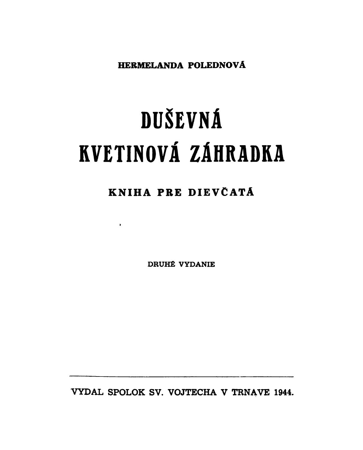 Knižnica Plameňa, sv. 2; Spolok sv. Vojtecha, sv. 999. Vyšlo ještě 1938. Vyd. 1934 má označ., jako by šlo o 1. díl.