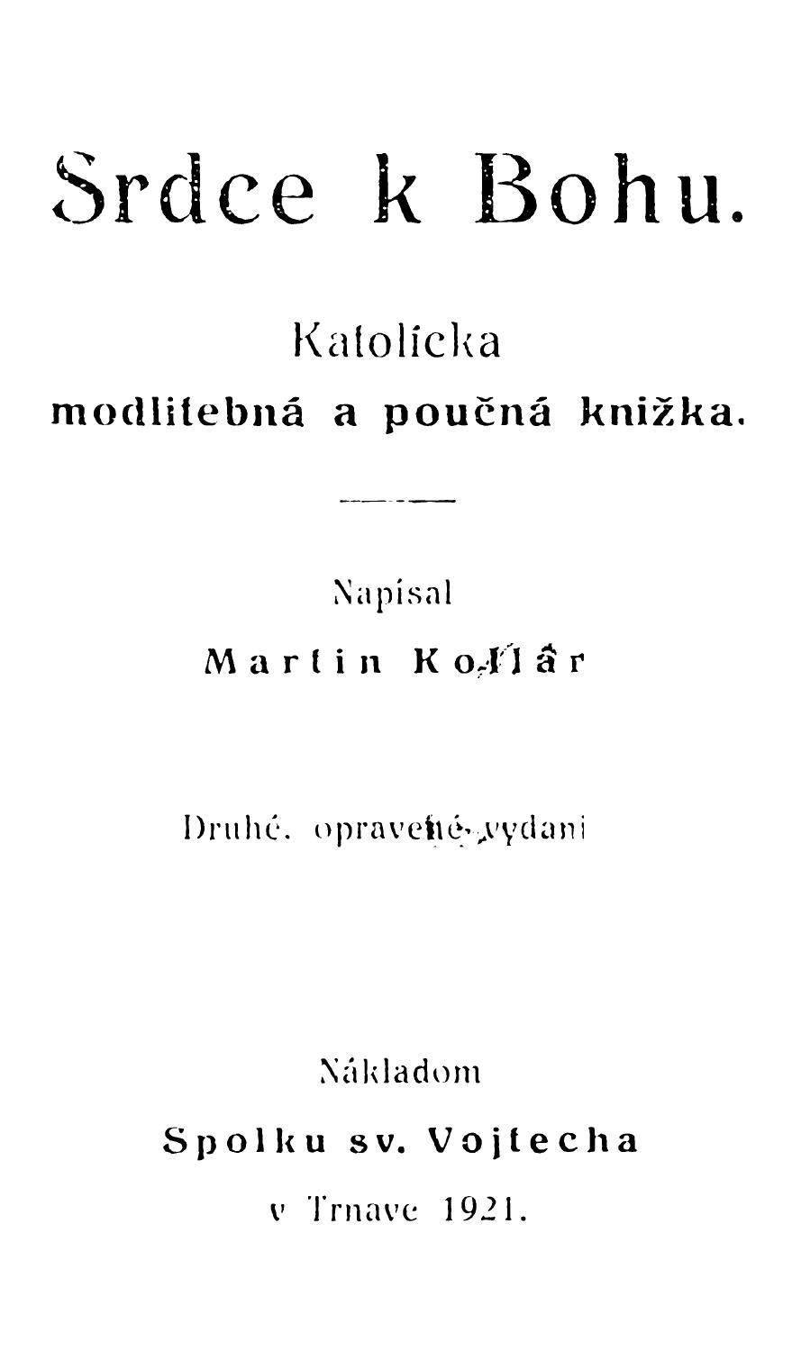 Vyšlo dvakrát, poprvé 1938. O autorství je uvedeno: Od autora "Eucharistických jisker", zřejmě má jít o Eucharistické jiskry. I. až V. díl. zde v pododd. 0607: K osobám Nejsvětější Trojice, ovšem ani tam se nám nepodařilo autora zjistit.