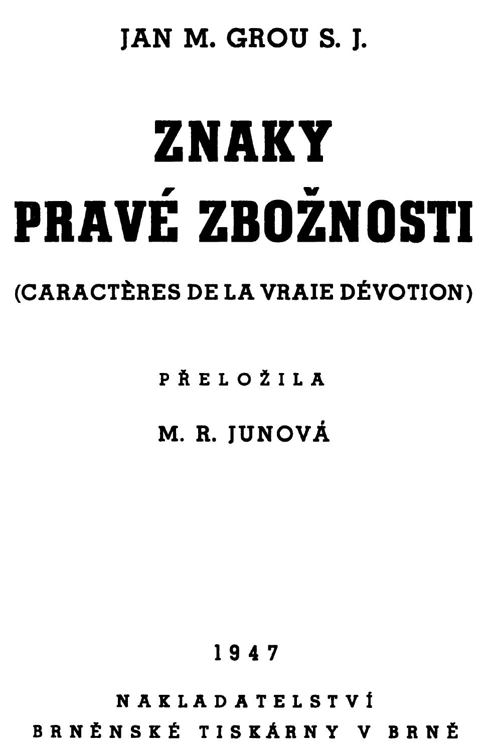 Org. Caractères de la vraie dévotion. Z francouzštiny přeložila Marie Rosa Junová. I. vydání. Edice Duchovní knihovna, svazek II.