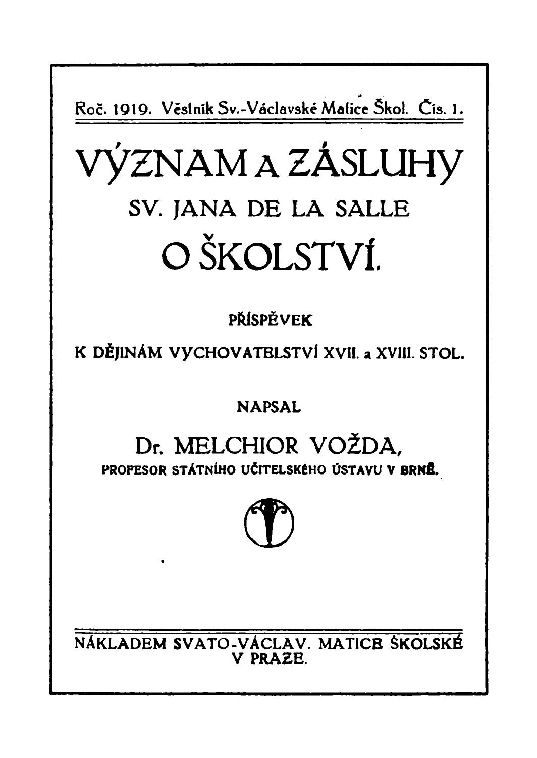 Příspěvek k dějinám vychovatelství XVII. a XVIII. stol. Edice Věstník Sv.-václavské matice škol., roč. 1919, čís. 1.