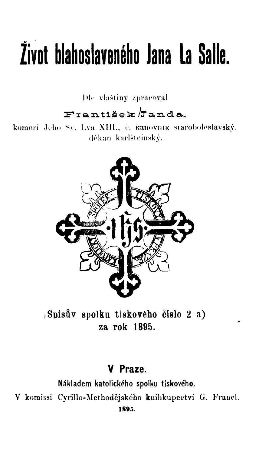 Separát z Ordinariátního listu Pražské arcidiecése, 1899, č. 19-21. Předtím 1893.