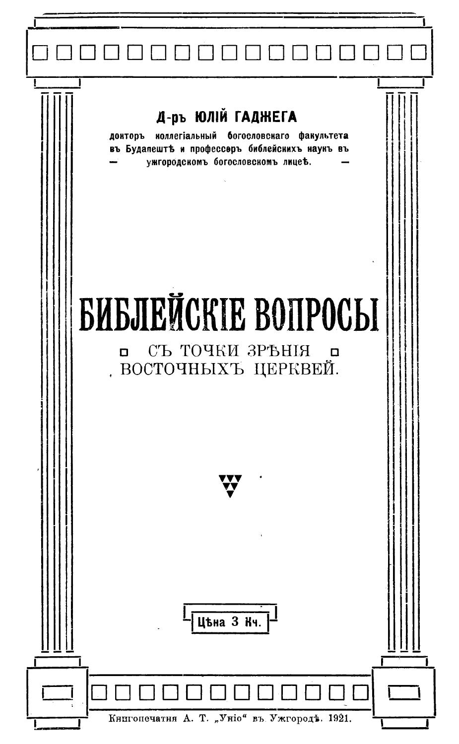 Pozn. 1: K autorství – knihu schválil Gr.-kat. biskupského ordinariátu v Prešove, jmenovaný byl 6. eparchiálny biskup Prešovskej eparchie v letech 1940 – 1960.