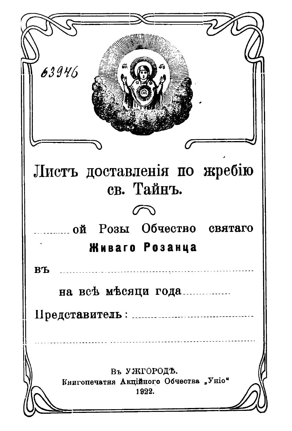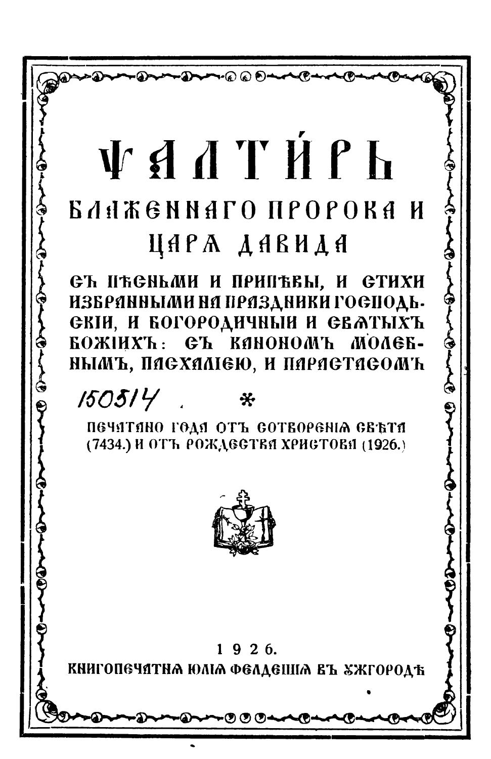2. vyd. (108 stran, autor není uveden), předtím vyšel 1937 (98, resp. 100 stran, jako autor je uveden predstavený užhorodského katedrálneho chrámu – v roce 1949 – protojerej Irinej Kontratovič).