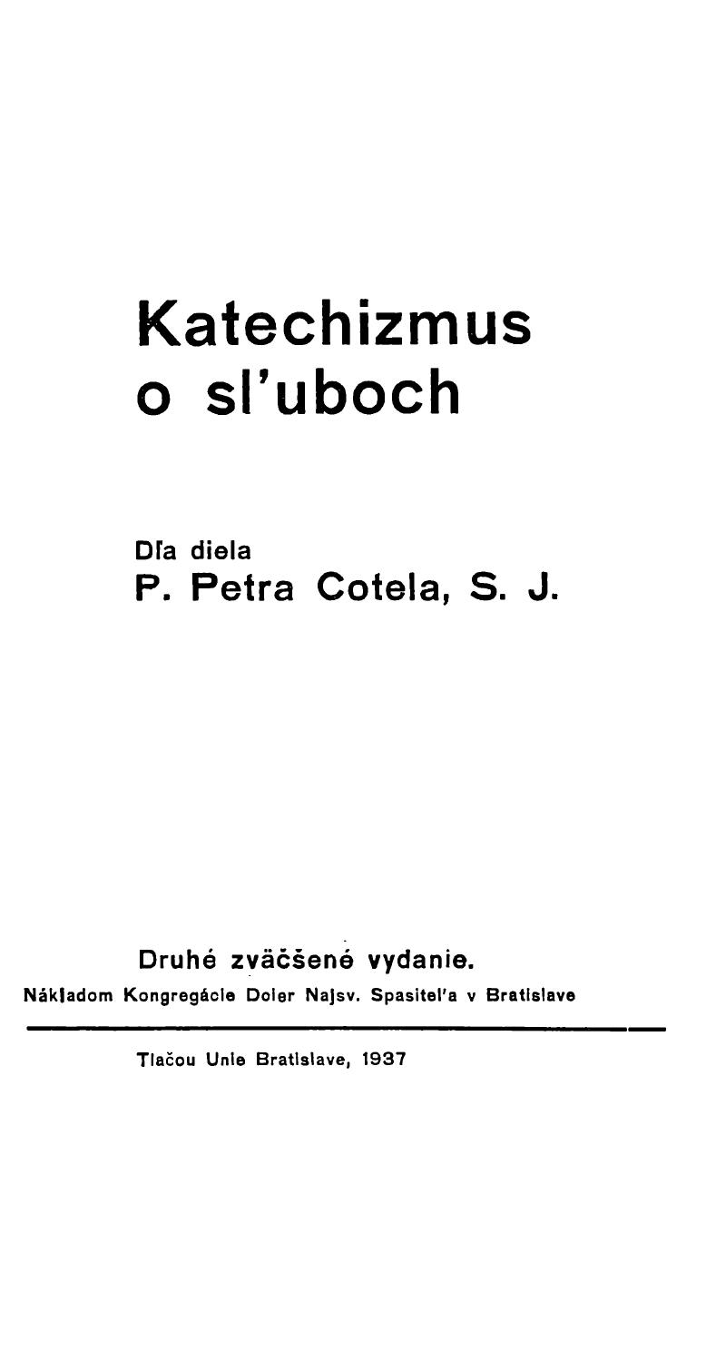 Druhé zväčšené vydanie. Preložené z najnovšieho nemeckého (10. a 11.) vydania „Cotel, Katechismus der Gelubde“.
