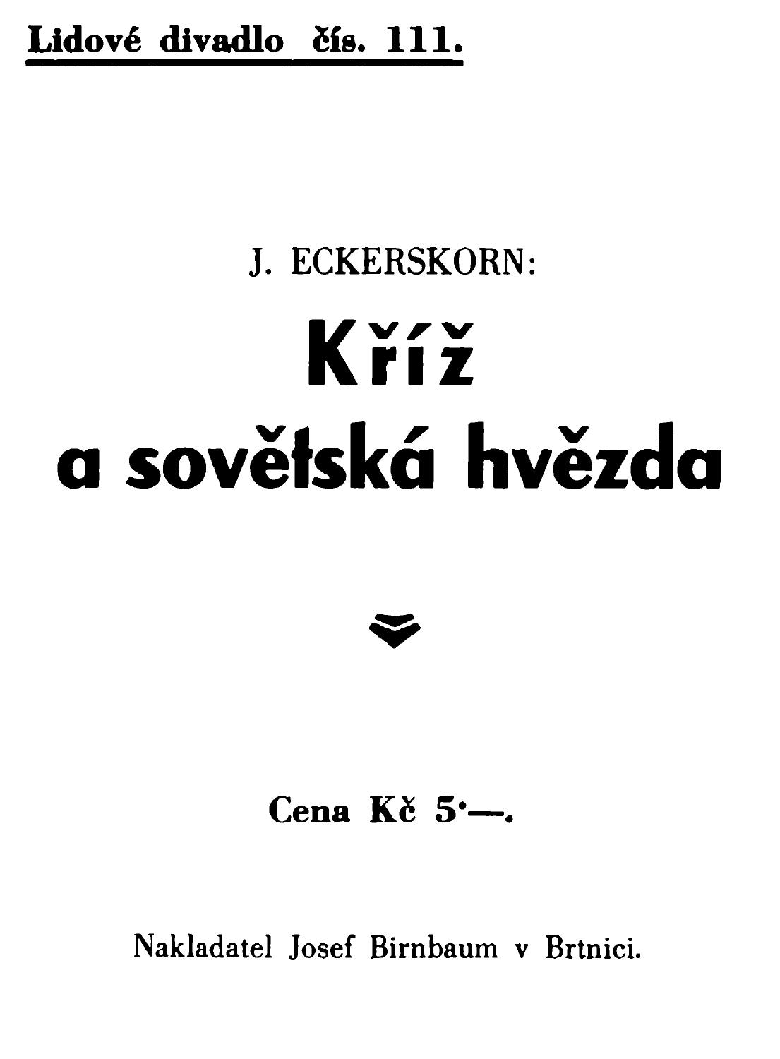 Org. Kreuz und Sowjetstern. Z němčiny přeložil P. Ignác Miklík C. Ss. R. Činohra o 4 jednáních. Edice Lidové divadlo, čís. 111.