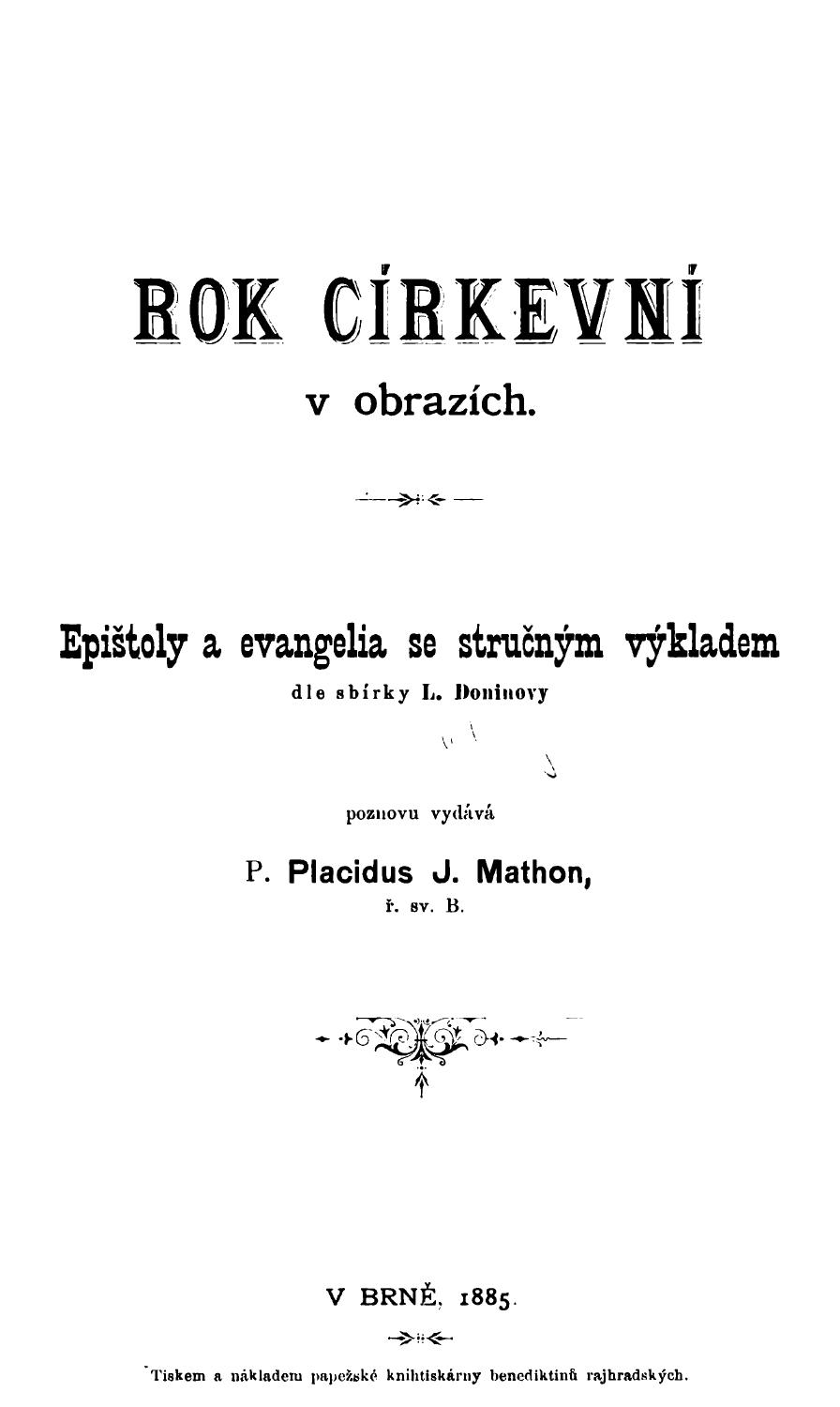 (název pokračuje:) s věro- i mravoučnými úvahami, vysvětlivkami důležitějších obřadův a obyčeju církevních, s připojenými výroky svatých otcu, životy čelnějších svatých blahoslavených dítek církve katolické Ctihodného otce Leonarda Goffine-a, kněze řádu Premonstrátského, z něm. původního díla přeložili z lásky k svému milému národu českoslovanskému bohoslovci olomouckého kněžského semináře. Nejnovější vydání doporučil a zapůjčil čtenář J. K.; kniha od té doby česky nevyšla. Předtím vyšla v Dědictví sv. Jana Nepomuckého, sv. 61 (díl 1) a Dědictví sv. Jana Nepomuckého, sv. 62 (díl 2). Přitom díl 1. obsahoval neděle a svátky Páně, 1875, 530 str. a díl 2. obsahoval slavnosti a svátky Svatých, 1876, 274 str. Slovensky vyšlo v 1 svazku 1906.