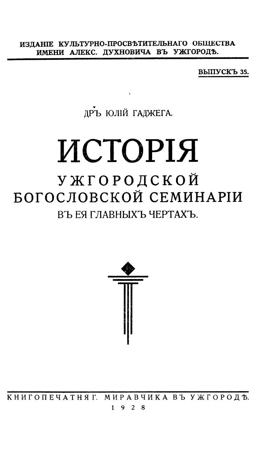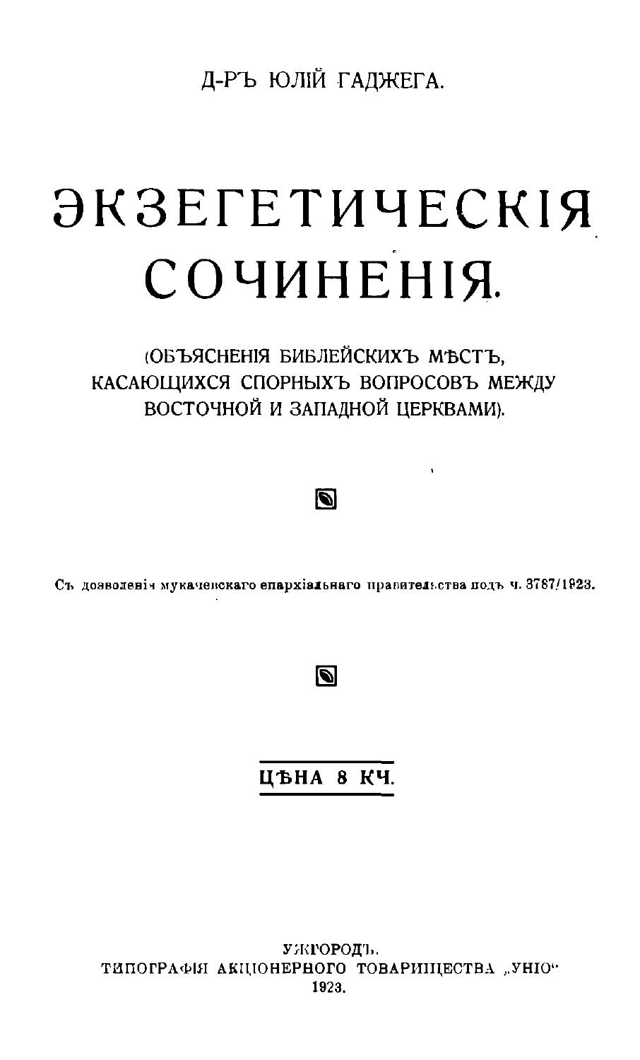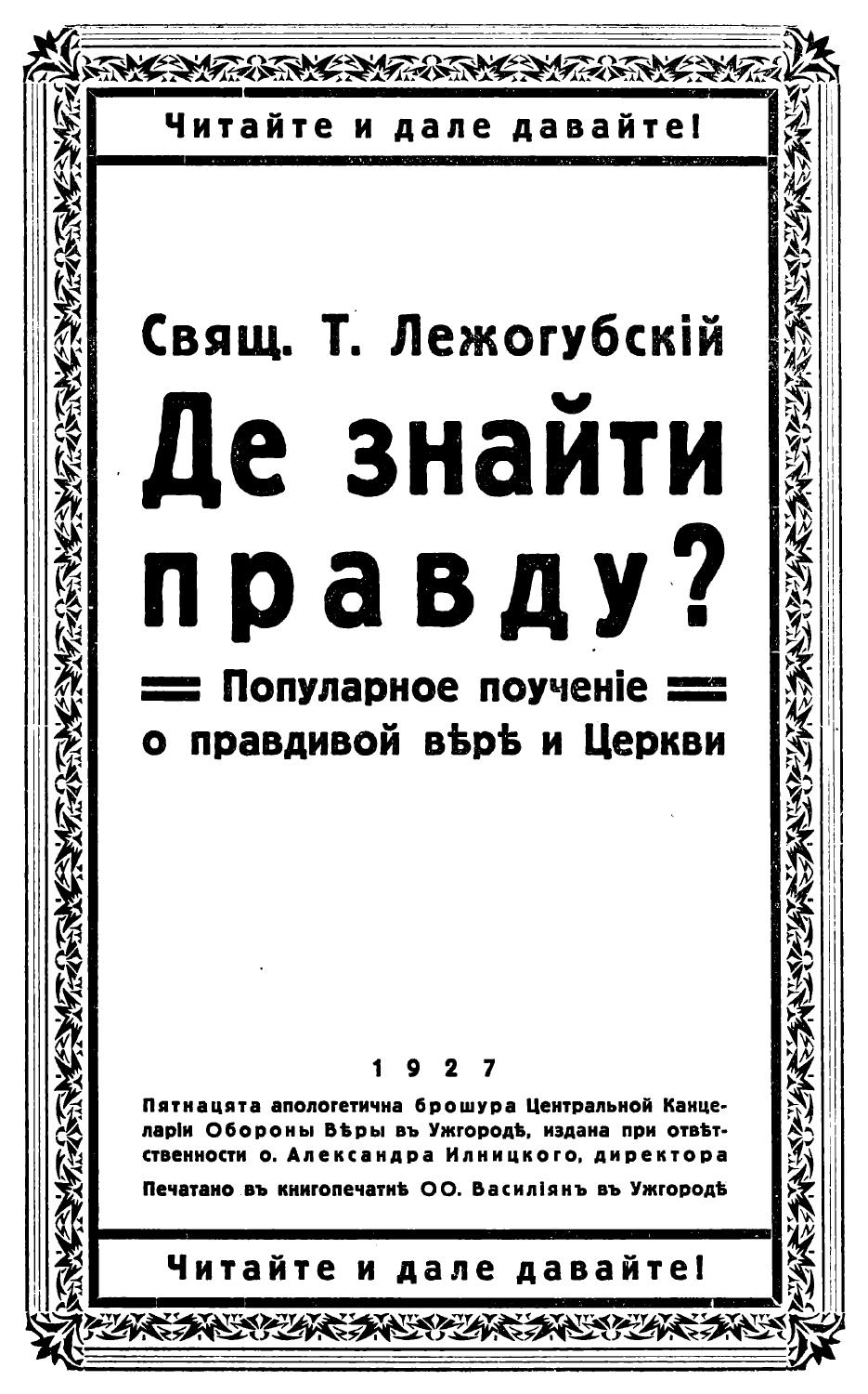 2. vyd. (108 stran, autor není uveden), předtím vyšel 1937 (98, resp. 100 stran, jako autor je uveden predstavený užhorodského katedrálneho chrámu – v roce 1949 – protojerej Irinej Kontratovič).