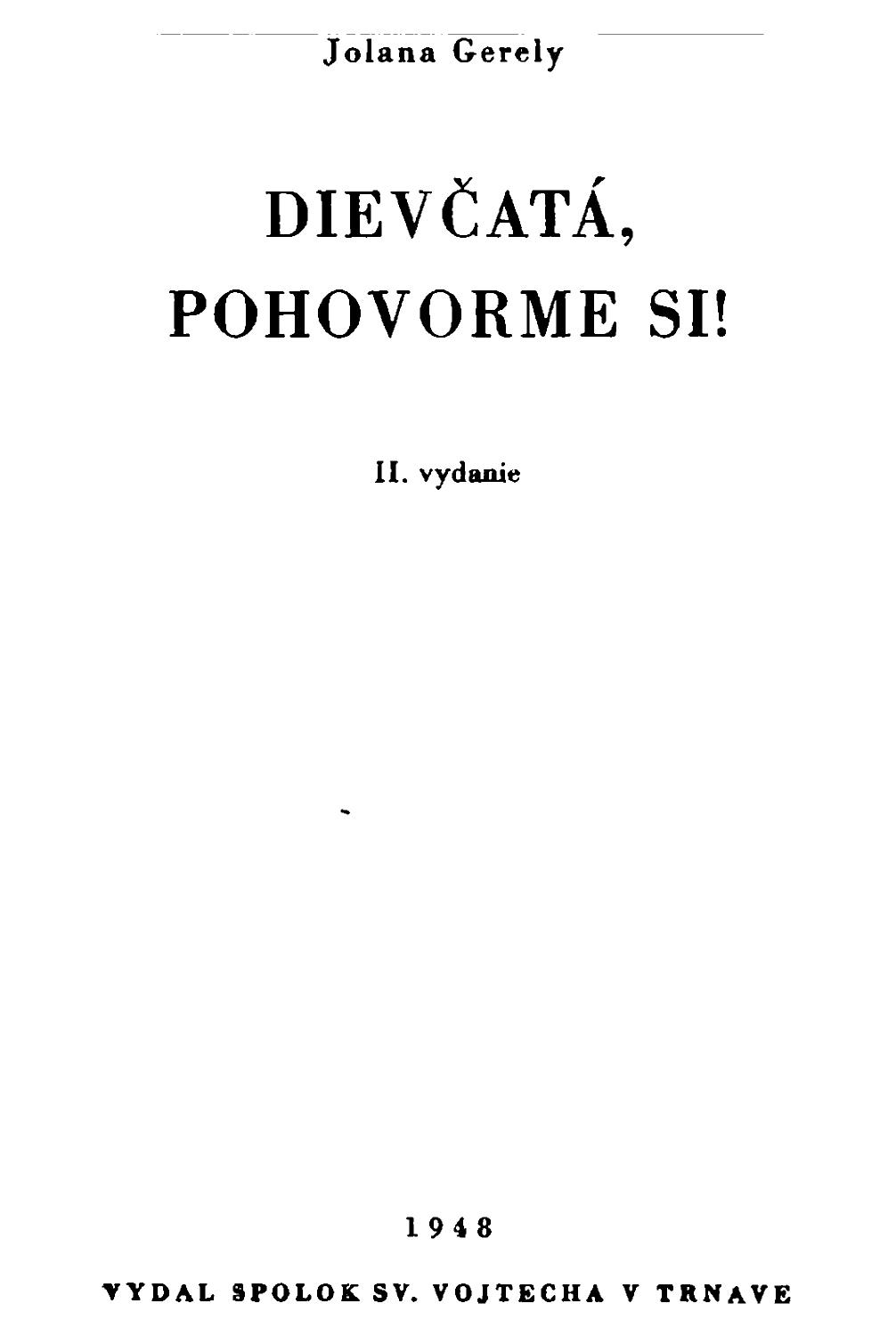 1. vyd., Školské sestry OSF, sv. 43; dotisk 1940. 2. vyd. 1947 jako Edice Školských sester OSF, sv. 4. Orig. A mai leányok útja vyšel v Budapešti r. 1932 a 1939, autorka * 12. 2. 1882 Budapešť, † 1944 Budapešť. Doplňujeme výpis z Maďarského katolického lexikonu.